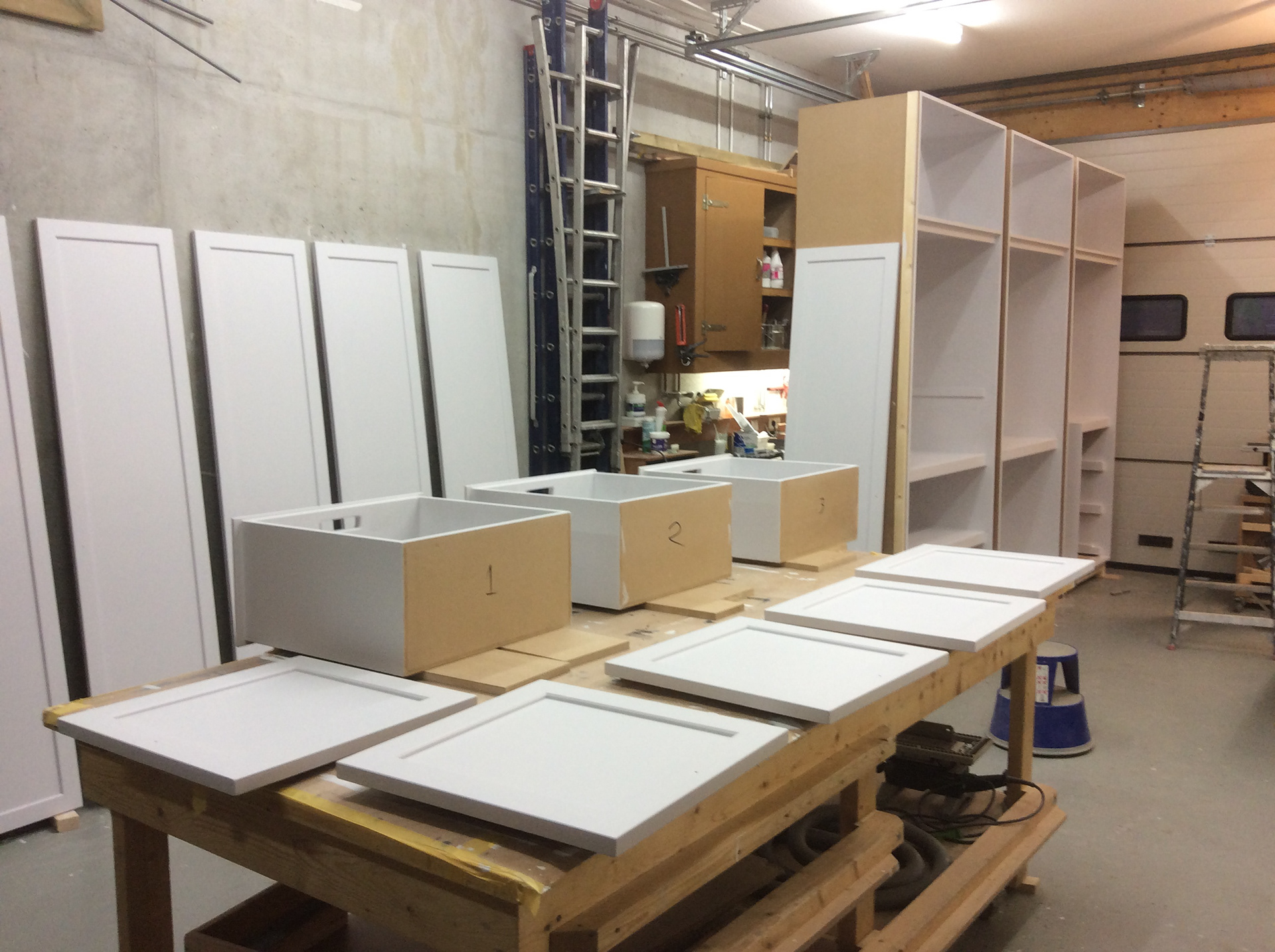 Vaste kasten voor grachtenpand om electra, ventilatie en andere installatiewerk in weg te werken. Paneeldeuren. Klant gaat het zelf schilderen.